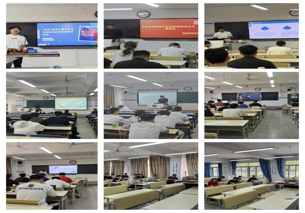 答辩过程中,学生们围绕论文选题背景、研究方法、结果分析、核心结论等内容进行阐述,通过PPT 展示研究成果。答辩评委从选题科学性、逻辑严谨性、实践可行性等维度逐一点评,提出针对性修改建议。为体现专业培养方向,体育教育专业学生的研究选题涵盖了体育教学内容、青少年体力活动等多个热点领域,充分展现了专业性。社会体育指导与管理专业学生则围绕休闲体育活动组织管理、健康促进与提升等内容展开研究,体现了该专业在社会体育领域的应用价值。