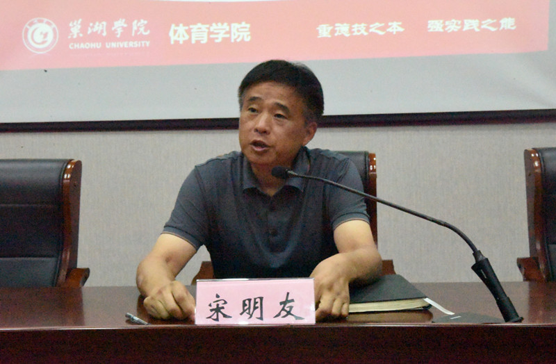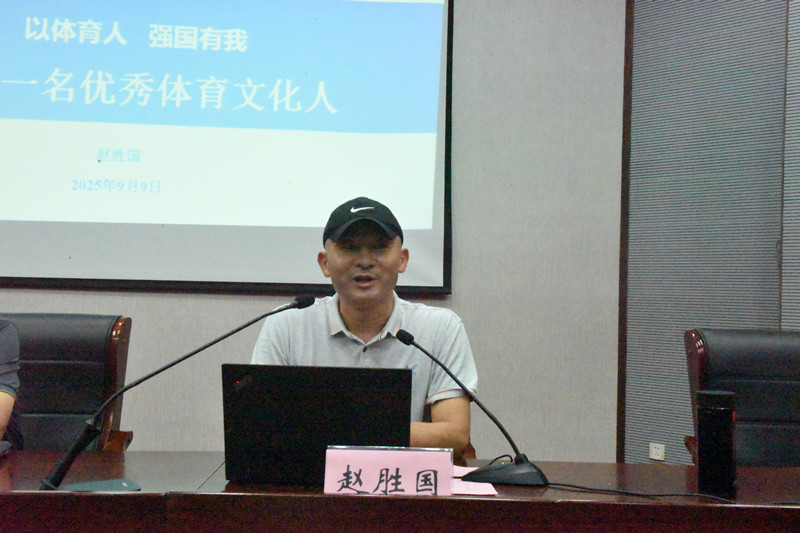 学院院长赵胜国致辞,对全体新生表示热烈的欢迎。赵胜国详细介绍了体育学院的发展历程、专业优势、资源平台、师资实力等,并对新生们提出要有梦、要敢于追梦、要有计划地圆梦,在面对即将到来的大学生活,要树立新目标,明确就业方向,要以德为本,实践为能,努力做一名优秀的体育文化人。