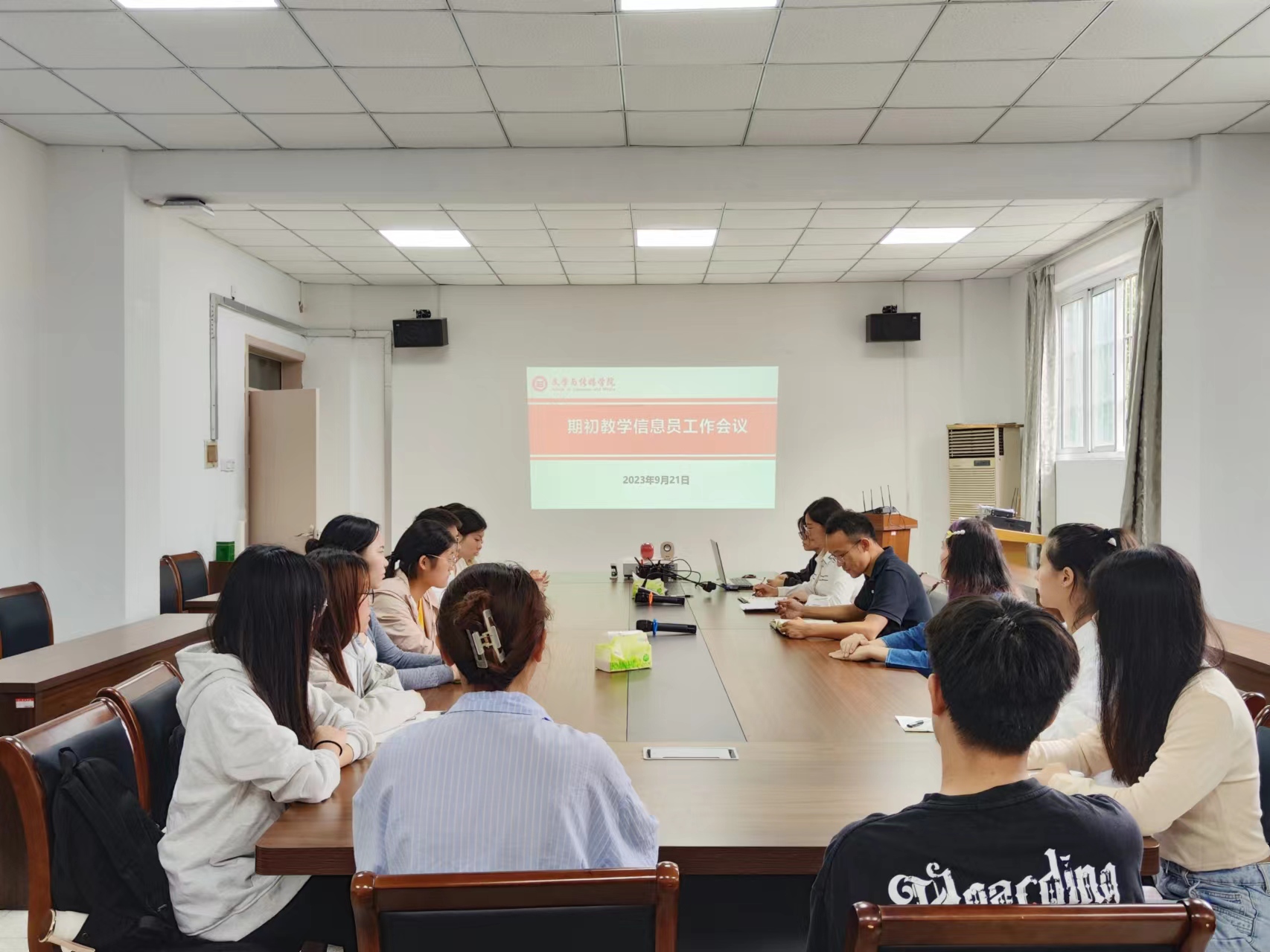9月21日中午,文学与传媒学院召开2023年秋学期教学信息员工作会议。教学(科研)秘书、各行政班教学信息员参加会议,会议由副院长王宇明主持。