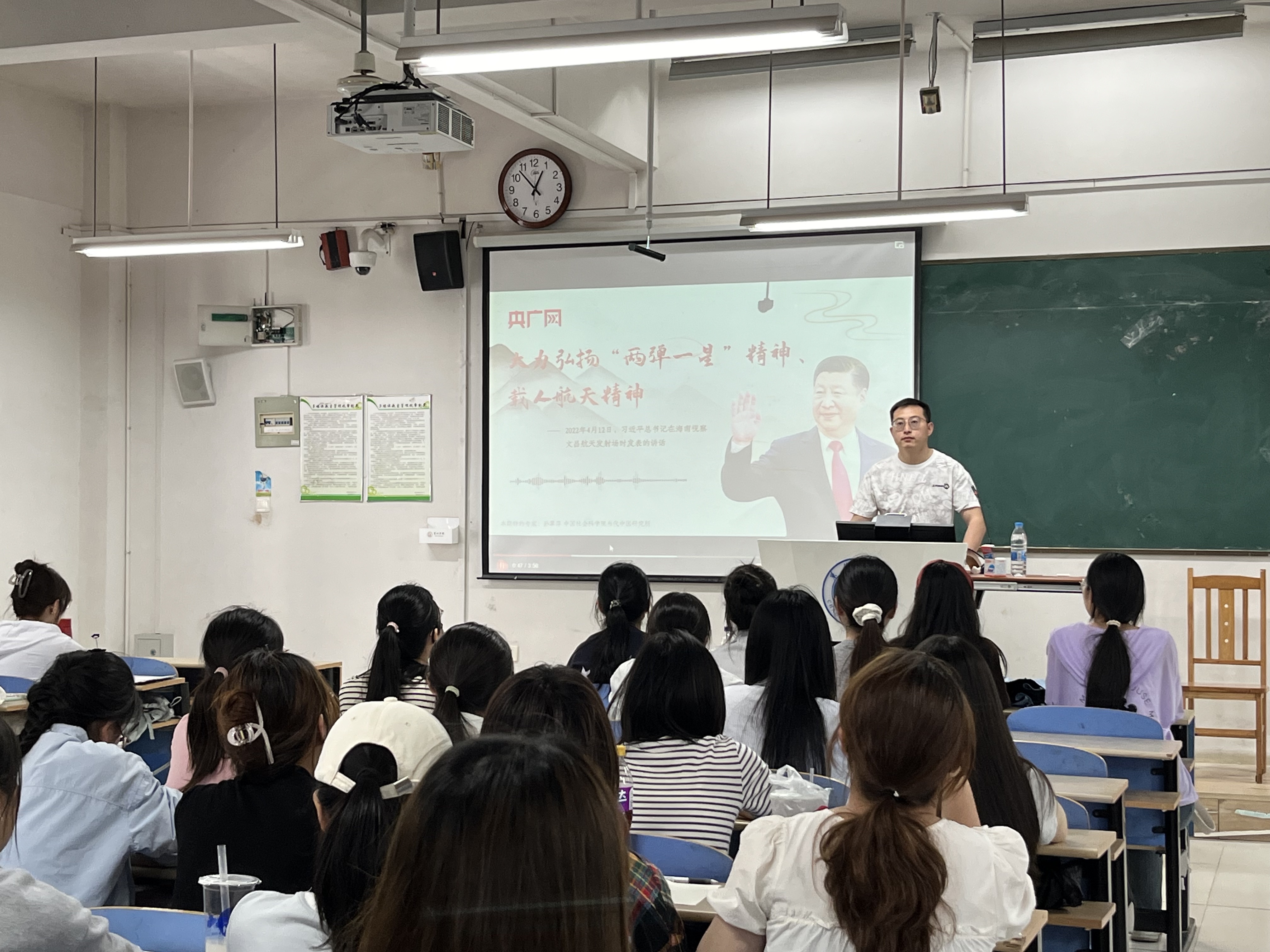 在交流环节,同学们畅所欲言。23汉语言班马志敏认为“两弹一星”精神有着伟大的现实意义,它照耀着我们要在实践中锻炼自己,发展自己,在前进的道路上越走越远,越走越宽。”23汉语言专升本2班吴薇说“勇于攀登航天科技高峰,主动担当起历史的重任,正是我们新时代青年需要认真学习并弘扬的宝贵精神。”22网媒1班陈军阳认为“新时代青年要珍惜学习机会,努力提高自己的综合素质,为实现人生目标而努力。”23网媒2班闫小岩认为“学习老一辈科技工作者的奉献精神,启发我们要勇于追梦,勤于圆梦,不忘初心、砥砺前行,努力成为堪当民族复兴大任的时代新人。”