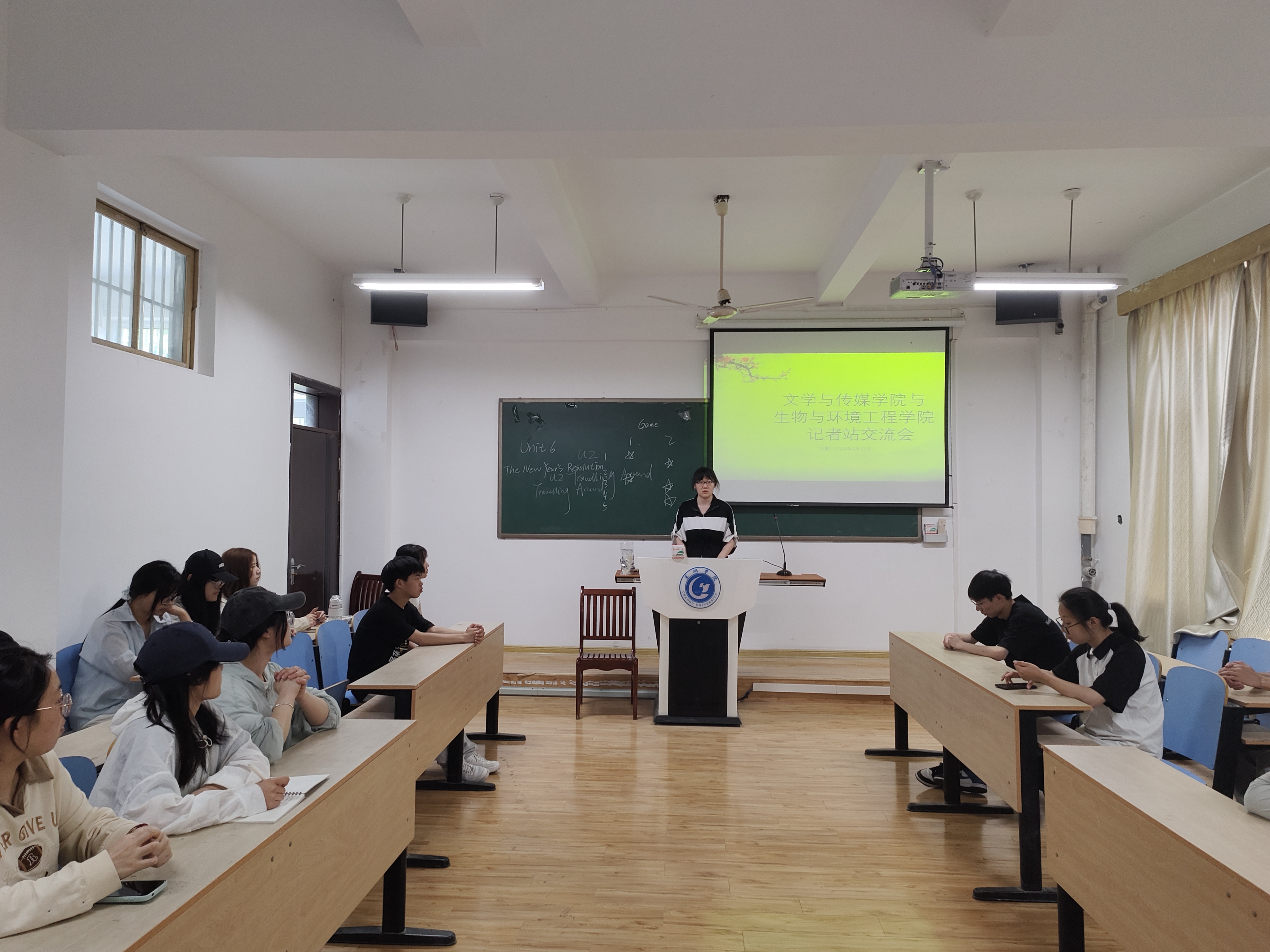 为加强学院记者站建设,进一步提升网络宣传工作水平,5月17日下午,文学与传媒学院记者站与生物与环境工程学院记者站在敏行楼110教室召开交流会,本次会议由文学与传媒学院记者站站长赵雅主持。
