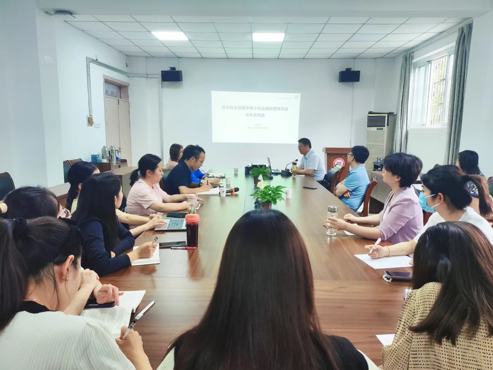 6月5日下午,文学与传媒学院第5期“汤山传媒讲坛”在敏行楼会议室举行,安徽大学葛明驷教授应邀作题为“媒体融合进程中媒介化治理的逻辑演进与失灵风险”的学术讲座。新媒体系、广告系全体教师参加,讲座由副院长王宇明主持。