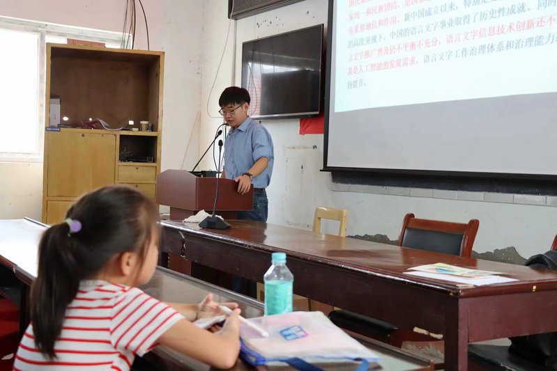 开展推普讲座。推普讲座是此次“三下乡”实践活动的重要组成部分,核心内容是“用普通话传承方言文化”,强调普通话的重要作用,旨在通过专业讲解和互动交流,提高乡村居民的普通话水平,增强他们的语言沟通能力和文化认同感。实践团成员伊崇喆博士在黄麓镇张疃村进行了一场题为“推广普通话 奋进新征程”的讲座,这次讲座吸引了众多村民前来参加,现场气氛热烈而温馨。