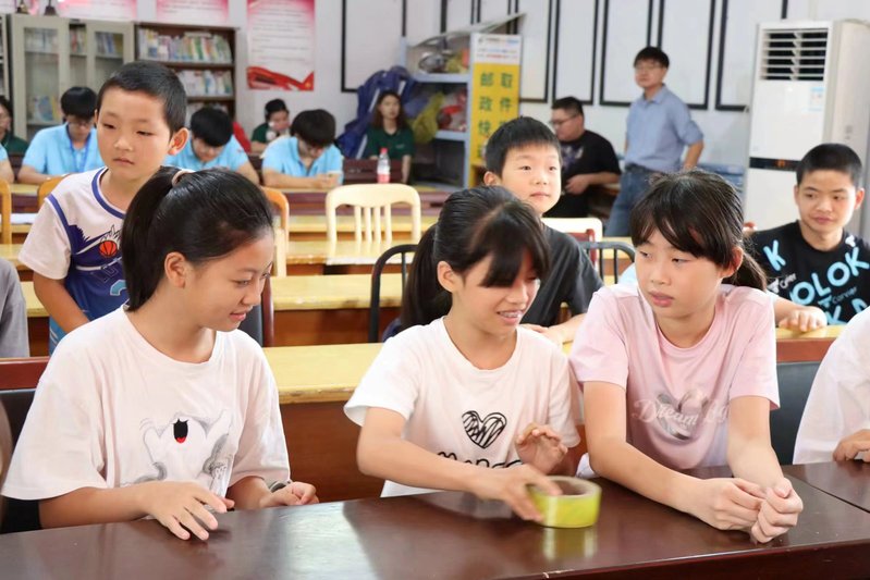 进行推普游戏。实践团在黄麓镇张疃村党群服务中心开展推普课堂。课堂上,团队成员精心准备了“击鼓传花诵古诗”“趣味绕口令”和“看偏旁写汉字”等活动,并对表现优异的小朋友给予礼品奖励,激发他们学习普通话的兴趣。