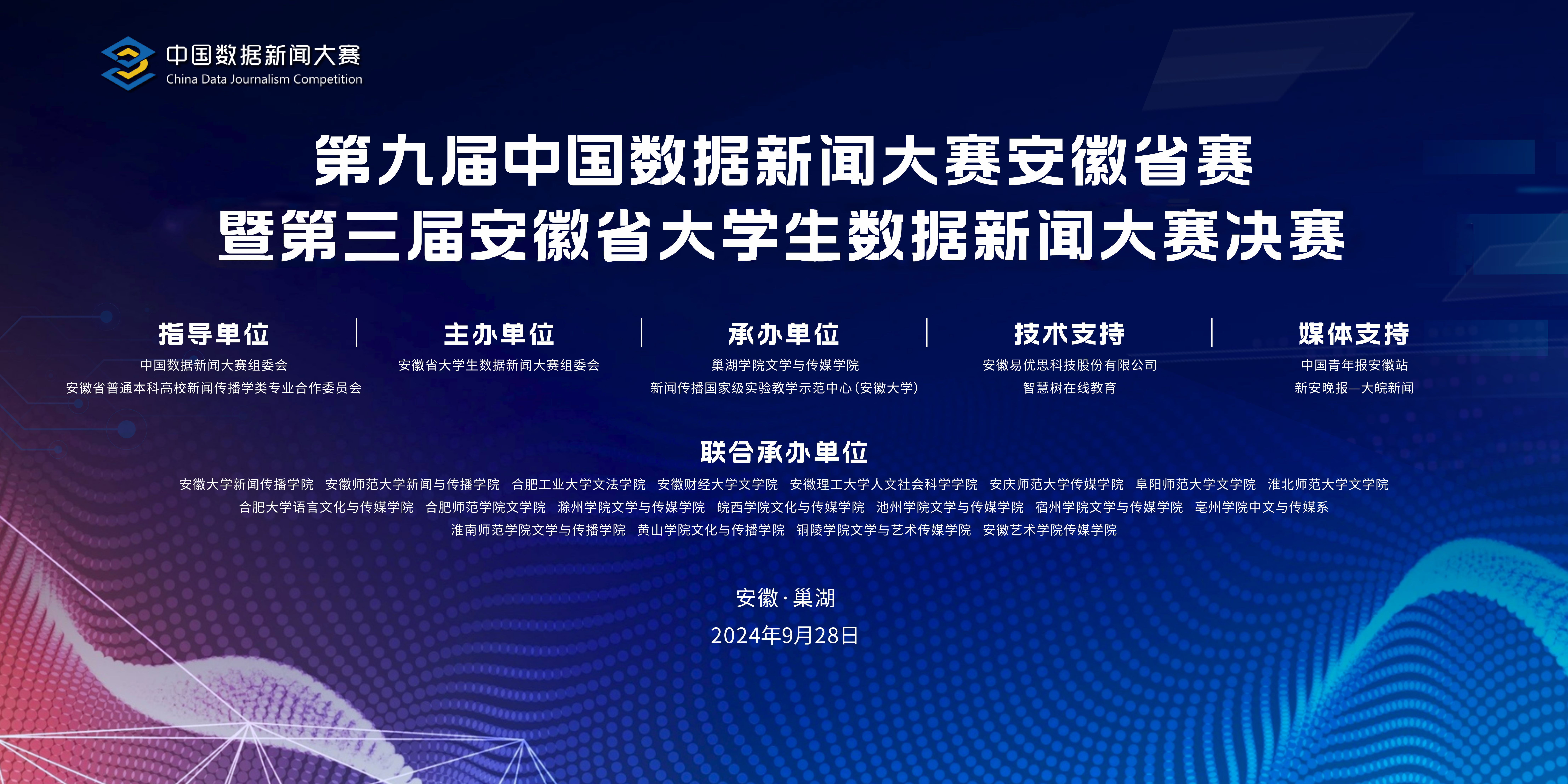 9月28日,第九届中国数据新闻大赛安徽省赛暨第三届安徽省大学生数据新闻大赛决赛在必赢76net官网成功举办。本次大赛由安徽省大学生数据新闻大赛组委会主办,必赢76net官网文学与传媒学院和安徽大学新闻传播国家级实验教学示范中心共同承办。