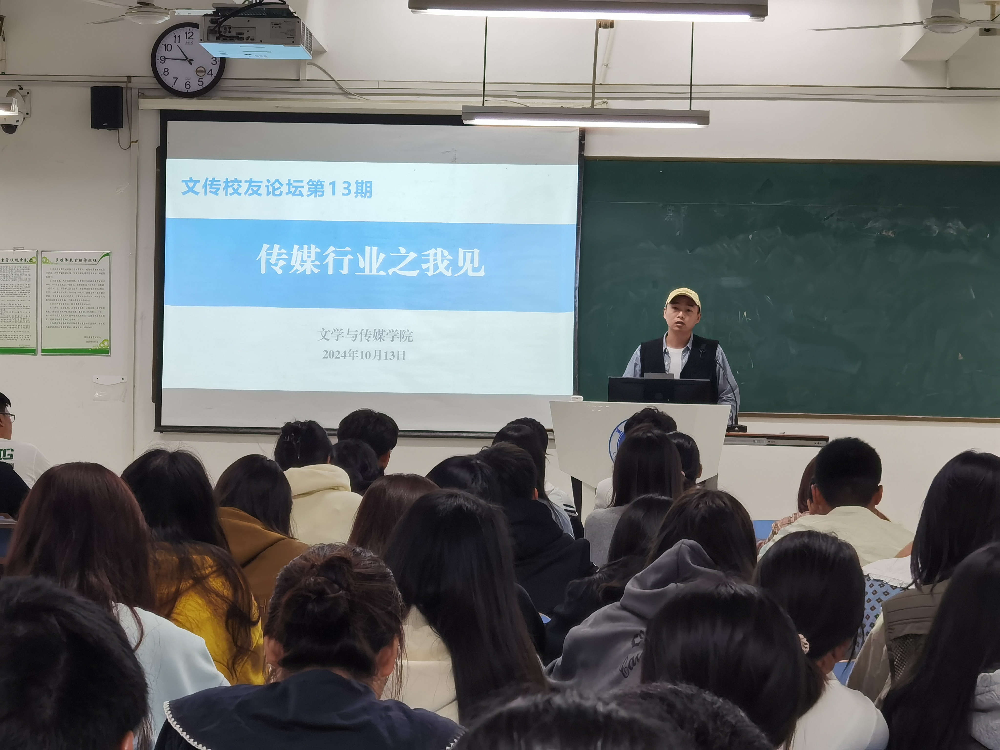 为进一步凝聚校友力量,拓宽育人途径,帮助学生做好学业规划与职业生涯规划,10月13日上午,文学与传媒学院举办第13期校友论坛。论坛邀请到2018级广告学校友杨远程,以“传媒行业之我见”为题,重返母校与广告学、网络与新媒体专业新生进行交流。