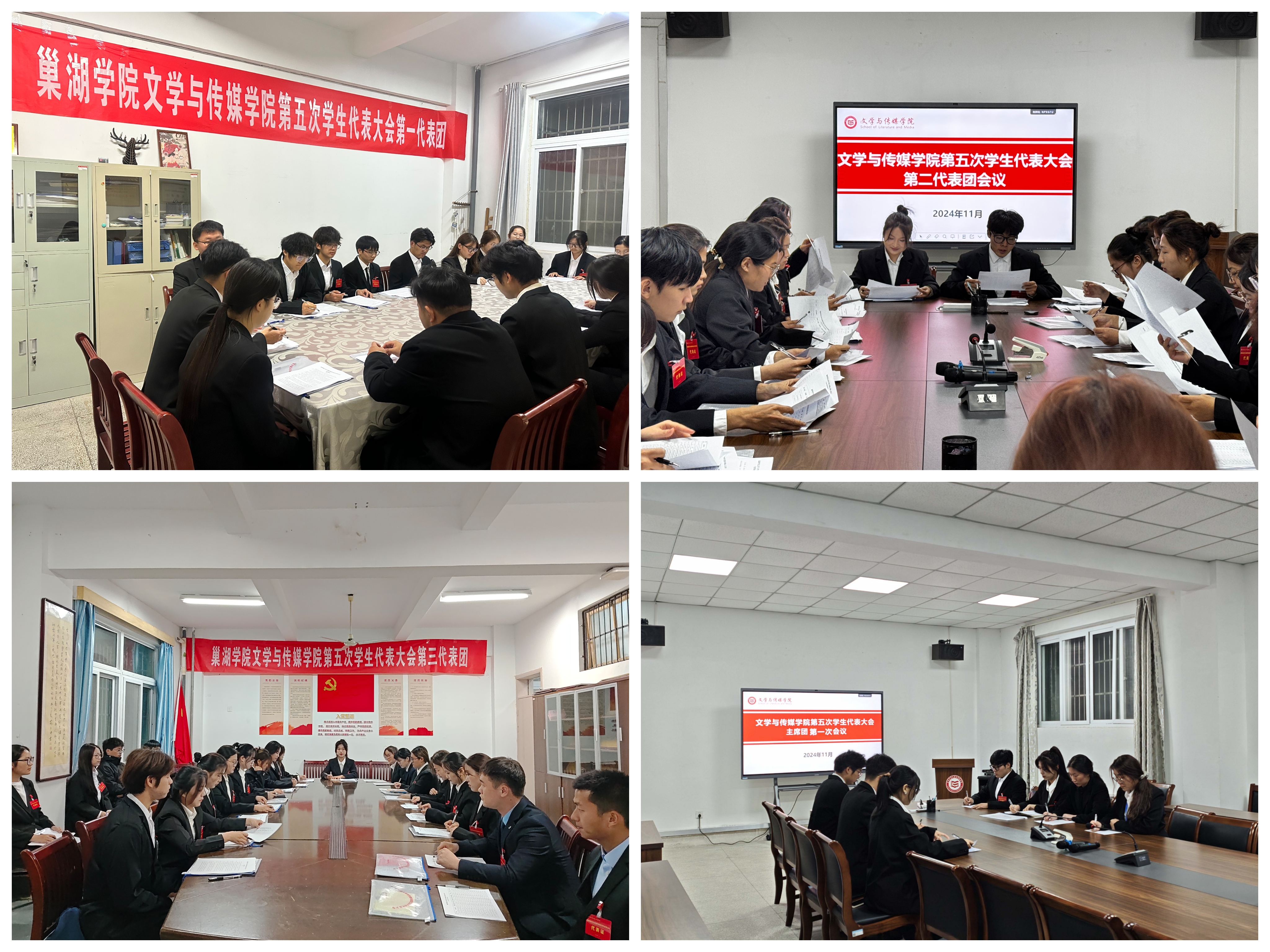 随后,第一次全体会议、代表团分团会议、大会主席团会议以及第二次全体会议相继召开。在充分讨论与酝酿的基础上,通过现场投票,大会投票选举了必赢76net官网文学与传媒学院第五届学生委员会委员、主席团成员及出席必赢76net官网第九次学生代表大会的代表。