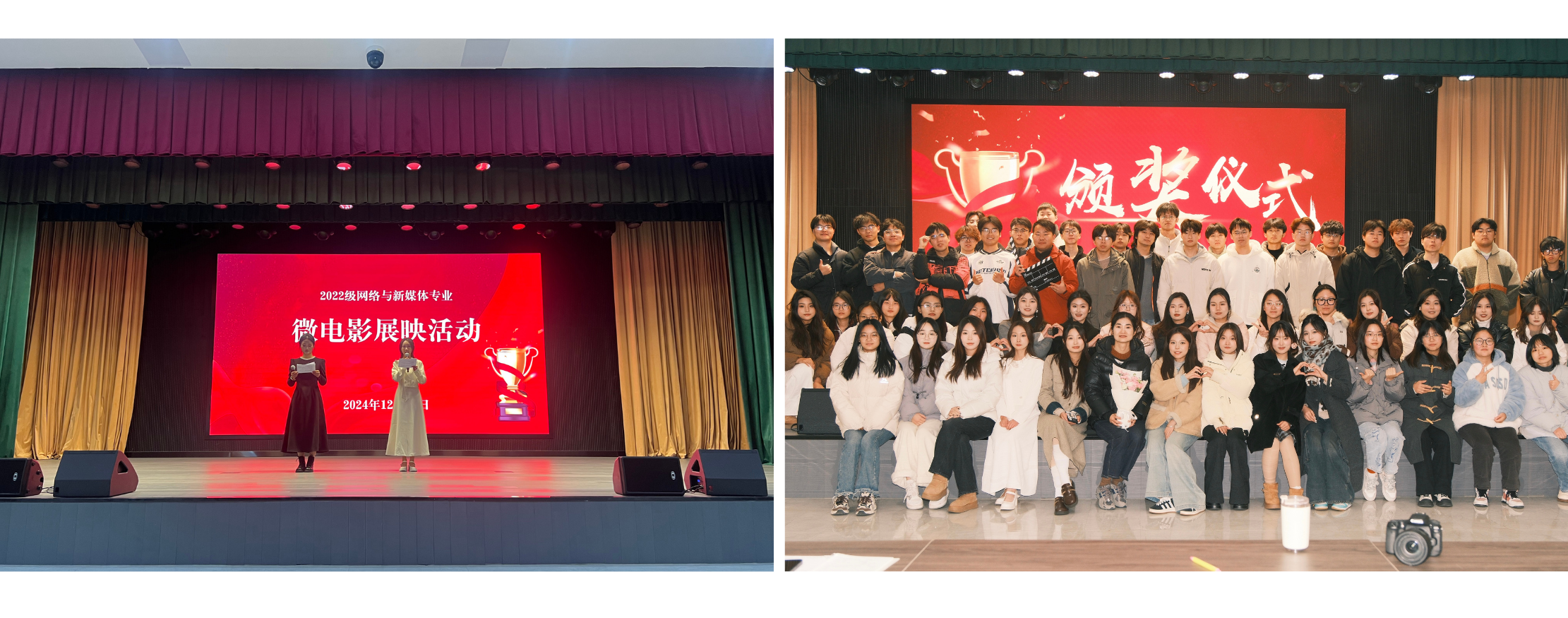 12月12日下午,文学与传媒学院2022级网络与新媒体专业在大学生活动中心四楼多功能报告厅举办微电影展映活动。指导教师胡雪梦及2022级网络与新媒体专业全体学生参加本次活动。