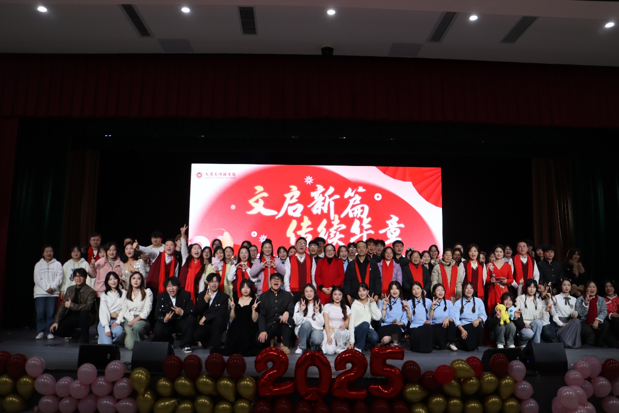 12月27日晚,必赢76net官网文学与传媒学院在大学生活动中心四楼隆重举行2025年新年晚会。文学与传媒学院党委书记袁凤琴、副书记孙冰、副院长王宇明、教师代表、全体辅导员以及学院200余名学生欢聚一堂,共同迎接新年的到来。