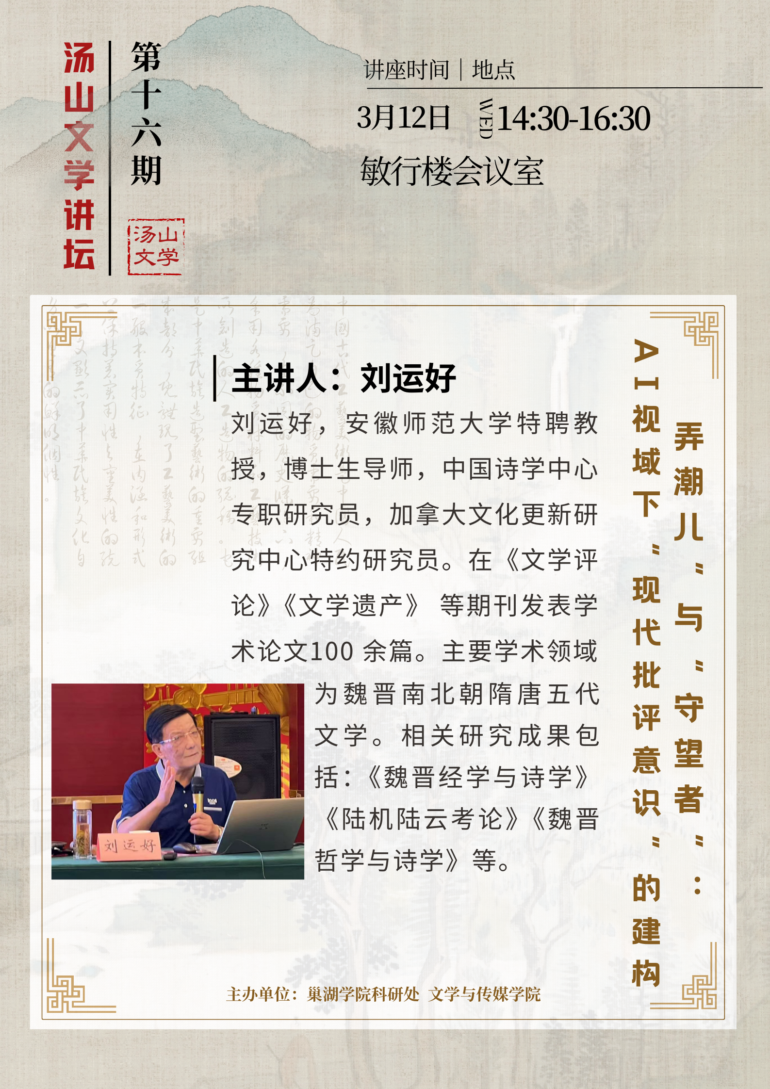 【汤山文学讲坛(第16期)】“弄潮儿”与“守望者”:AI视域下“现代批评意识”的建构