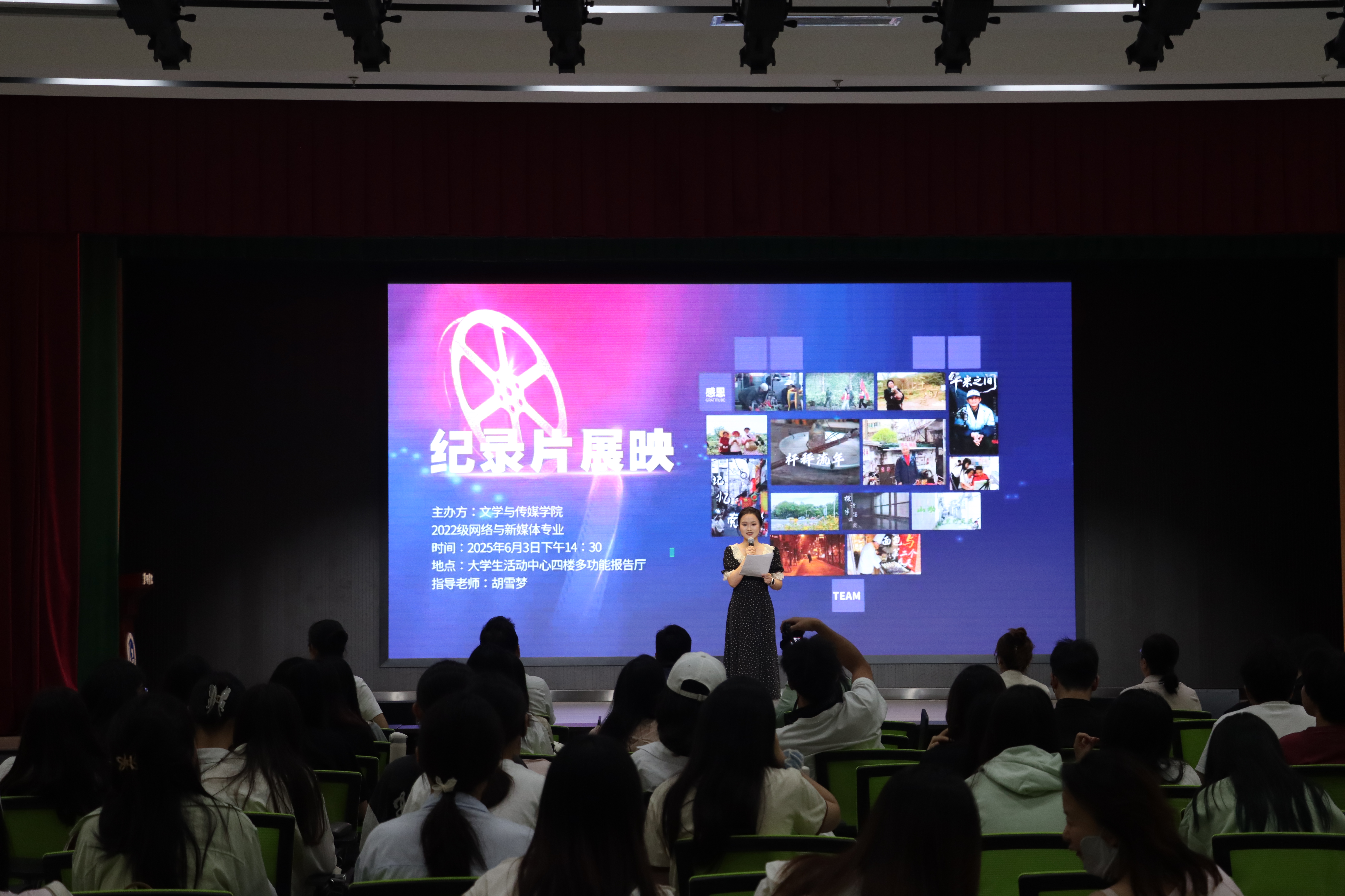 6月3日下午,文学与传媒学院2022级网络与新媒体专业纪录片展映活动在大学生活动中心举办,本次展映活动的主题是“行迹”。教务处副处长彭维才,文学与传媒学院党委书记袁凤琴、副书记孙冰,新媒体系部分教师及2022级网络与新媒体专业全体学生参加此次活动。