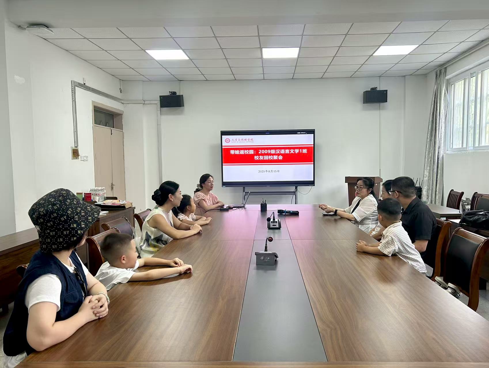 8月15日,暑风蝉鸣,文学与传媒学院迎来了一批特殊的 “访客”——2009级汉语言文学1班的“亲子返校团”。校友携子女重校园,赴一场跨越十年的“青春之约”。学院党委书记袁凤琴、校友联络员李陈热情接待校友一行。