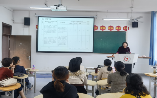 会议伊始,方灵芝老师介绍了大学英语课程教学大纲中课程目标的设定,及其对毕业要求的支撑度。她指出课程教学要以所教授专业的课程大纲为依据,遵循OBE理念,严格按照大纲中课程目标开展课程教学,并将课程目标点切实地落实到课程的作业、测试和考查等各个考核环节。同时,她对课程考核内容、评价依据和考核比例设定进行了详细说明,强调课程教学活动中,需按照大纲中规定的考核比例布置和实施过程性考核,妥善记录各部分的考核成绩,便于期末课程成绩评定和课程达成度报告撰写。之后,她结合《大学英语口语》课程实例介绍了课程考查评分标准中的注意事项,并分享了如何高效的利用学习通平台开展课程考核。