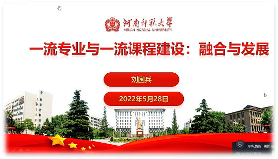 刘国兵教授在《一流专业与一流课程建设:融合与发展》的主旨报告中,在对课堂教学的现状进行思考的基础上,基于课程建设目标与要求,介绍了河南师范大学的课程建设举措,包括教考分离、优教优学;教研结合、以研促教;教学智慧、智慧教学;评价重构、优课优酬。