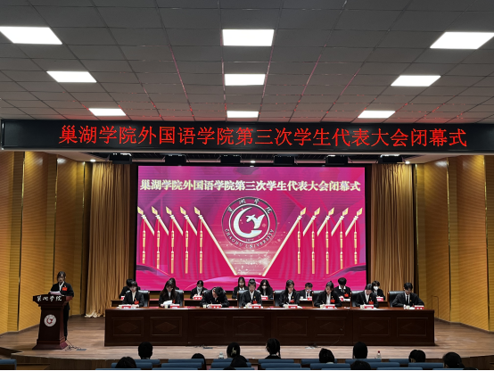 下午16:30,外国语学院第三次学生代表大会闭幕式在求实楼报告厅召开,大会报告选举计票结果,宣布外国语学院第三届学生委员会委员当选名单及学生会主席团成员名单,通过《必赢76net官网外国语学院第二届学生委员会工作报告》和《必赢76net官网外国语学院学生会章程》的决议。