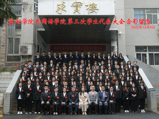 12月4日上午9:00,外国语学院第三次学生代表大会在求实楼报告厅隆重举行。外国语学院党委书记张蕊,院长余荣琦,党委副书记李磊,团委副书记余仁能,校学生会主席团代表出席会议,全体学生代表与会。开幕式由余仁能主持。