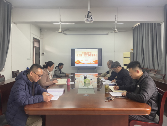 3月31日下午,外国语学院教工第一党支部在明德楼二楼会议室开展3月份政治理论学习。支部全体党员参加,支部书记余鹏主持学习会议。