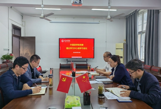 2023年5月26日上午,外国语学院党委在明德楼202会议室召开党委理论学习中心组学习会议,学院班子成员、党委委员参加会议,会议由学院党委书记张蕊主持。