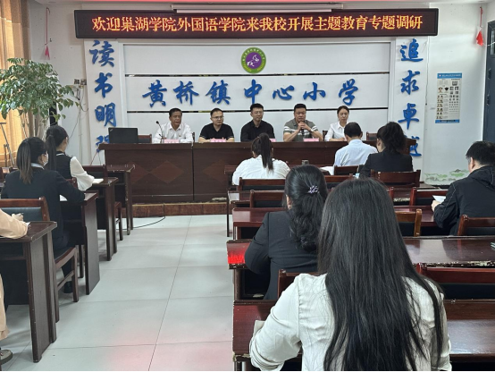 为响应中央号召在全党大兴调查研究的工作要求,探索大中小学课程思政一体化教学路径,推进外国语学院课程思政建设走向深入化,5月25日,外国语学院副院长余鹏,校团委副书记(挂职)、外国语学院教工第二党支部副书记李成飞赴颍上县黄桥镇中心学校和中心小学开展“大中小学英语课程思政一体化教学路径及师资培养研究”主题教育专题调研。颍上县黄桥镇中心学校校长汪洋、颍上县黄桥镇中心小学校长苏颍,中心学校及中心小学全体英语教师参加调研活动。
