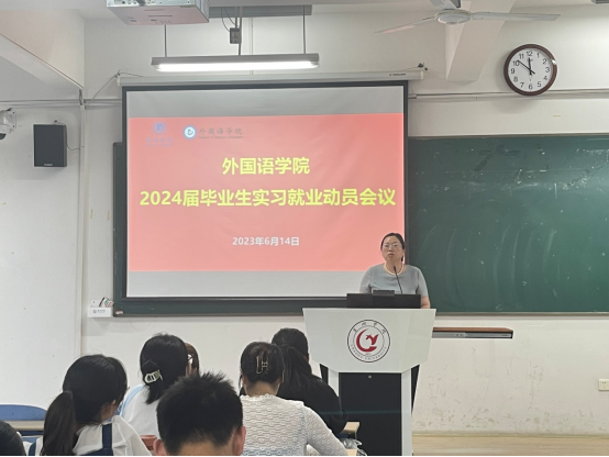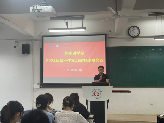 千方百计拓岗位,同心协力促就业。一直以来,外国语学院将学生就业创业工作放在重中之重的位置,坚决落实就业优先政策,引导毕业生实现高质量充分就业。本次召开2024届学生实习就业动员会,做到早动员、早部署,力求实现早实习、早就业。接下来,学院将更加凝心聚力,稳扎稳打,开展好2024届毕业生就业创业各项工作。(文、图/李玲 初审/李磊 终审/张蕊)