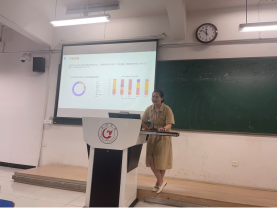 张蕊结合当前就业形势,近期23届毕业生就业情况以及学院访企拓岗情况向2024届学生介绍目前就业存在的问题:一是自我认知模糊,就业方向不清晰;二是自身定位不准,就业心态不端正;三是自身能力不足,就业准备不充分。她鼓励同学们一定要树立先生存后发展,先择业再就业的观念,要认清就业形势,坚定就业意识;明确就业目标,放平就业心态;拓宽就业渠道,积极主动就业。