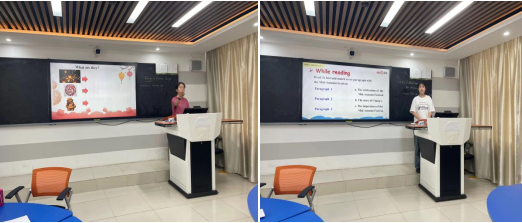 2023年外国语学院师范生教学技能竞赛复赛于6月14日下午2:00在明德楼104和105教室举行,共有16名选手参加此次复赛,比赛由师范生技能竞赛项目化指导团队教师担任评委,分别从语音语调、教学教态、教学设计,课堂展示,板书设计等方面考察选手们的教学基本功并进行综合打分。