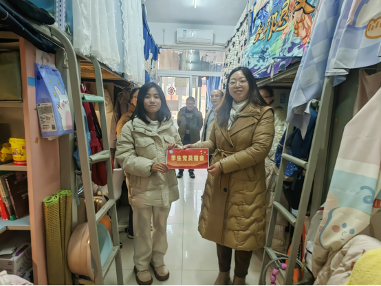 为了让学生党员铭记党员身份,提高党员服务师生意识,充分发挥学生党员在宿舍安全文明建设中的先锋模范和带头示范作用,学院举办学生党员宿舍挂牌仪式。仪式上,学院领导向学生党员宿舍进行挂牌。张蕊对被授予“党员宿舍”的学生表示祝贺,指出要努力做到“一名党员带动一个宿舍,一个宿舍带动一个班级”,齐心协力帮助同学们共建和谐、友爱、安全、文明宿舍。