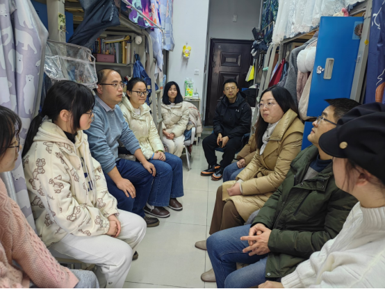 为切实了解学院学生在思想、学习及生活等方面的情况,提高党员为学生服务的意识,外国语学院班子常态化集体走访学生宿舍。12月28日下午,学院班子在学生党员宿舍召开学生党员恳谈会。会上,学院党员代表汇报自己所在宿舍的学生的思想动态、困难诉求以及对学院各项工作的意见建议。学院党委书记张蕊、院长余荣琦就学生反馈的问题进行细致耐心的答复,对他们所作工作的成效进行肯定,并对接下来需要开展的职业生涯规划、学业结对指导、困难生就业帮扶和预防电信诈骗宣讲等工作进行指导和要求。