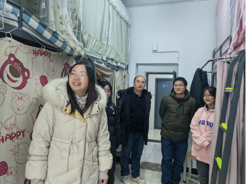 走访宿舍过程中,学院党委书记张蕊详细了解了学生的返校情况,交流了学生的寒假学习生活状况和想法,询问了他们在学习、生活中遇到的困难和问题,并给予了耐心的解答和指导。她强调,学院将一如既往地关心关爱每一位学生,帮助同学们解决实际问题,为同学们创造良好的学习和生活环境,她也叮嘱同学们注意人身和财产安全、防范电信诈骗、上好开学第一课。学院院长余荣琦就学习情况与学生进行了的沟通和交流,他深入了解了同学们的学习需求和学业规划,同时鼓励同学们积极参与学校的各项体育活动,保持规律作息、锻炼身体、多喝水、健康饮食、良好心态等健康生活方式,提高自身的身体素质。他表示,学院将根据同学的实际需求,不断改进教学工作,努力提高教学质量,为他们提供高质量的教学内容。