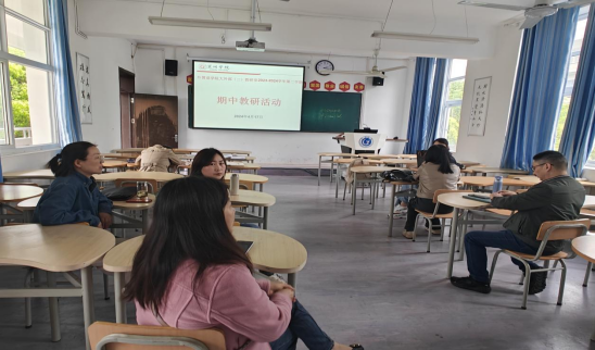 随后,两个教研室分别围绕不同主题开展教学研讨。大学英语(一)教研室以“大学英语读写与听说课过程性考核成绩评定方式及问题反馈”为主题,深入探讨了当前大学英语课程过程性考核成绩评定方式下存在的多种问题,例如,课堂参与度不高、题目难度较低、学生重视度不够等问题。针对当前存在的问题,教师们也提出了诸多建议,一是作业方面可根据课文内容设置不同题型,考查学生对文章大意和核心词汇的掌握,同时鼓励学生参与课堂抢答积累平时分;二是教师自行设计题目、在学习通中形成统一标准;三是将课堂抢答等活动表现纳入平时成绩,并增加现有考核方式中课堂表现的分值等。