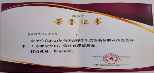 由全国高等师范院校外语教学与研究协作组,国际英语外语教师协会中国英语外语教师协会联合主办的2024年“全国高师学生英语教师职业技能竞赛” 经过两个多月的激烈角逐,近日圆满落下帷幕。我校学子在此次竞赛中表现卓越,荣获全国一等奖4名、二等奖4名、三等奖10名的佳绩,同时外国语学院也荣获“优秀组织单位”。