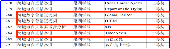 此项大赛是安徽省大学生学科竞赛B类赛事之一。大赛包括跨境电商直播、跨境电商大数据运营分析和跨境数字营销短视频创作三个赛道。其中直播和短视频赛道的省决赛环节,要求选手使用英语进行展示,不仅是对参赛选手专业知识的考验,也是对他们英语语言表达能力的检验。在学院和学校相关部门的关心与指导下,外国语学院国际贸易技能大赛指导教师团队制订了科学合理的赛前培训方案,学生们立足地方经济,深入研究国家战略,拓宽国际视野,精心挑选产品并恰当地表达,最终以优异的比赛成绩交出了满意的答卷。Trade Nexus队荣获直播赛道一等奖,Global Horizon队和O.T.M队均荣获短视频赛道一等奖,另有2支队伍获得二等奖,3支队伍获得三等奖。