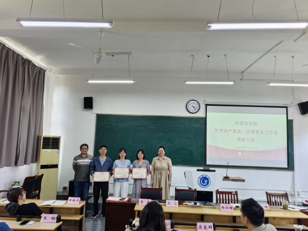 7月2日下午,学院召开外国语学院优秀党员、优秀党务工作者表彰大会,表彰了学院的5名优秀党员、4名优秀党务工作者,激励学院师生党员向榜样学习,营造积极向上、追赶先进的良好氛围。