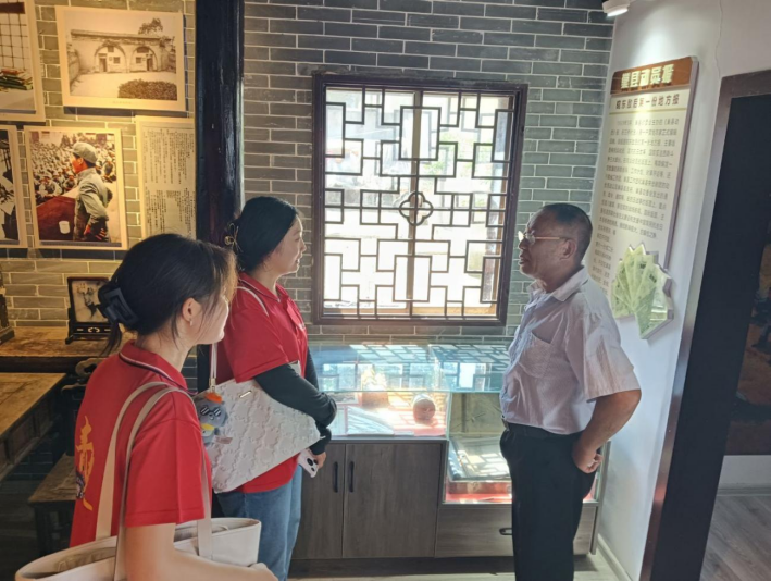 7月5日,实践团队踏上银屏镇三胜村的土地,开启对“红色银屏”品牌建设的深度探寻。讲解员声情并茂,讲述着这片土地上发生的红色事迹:当年革命先辈在此秘密集会、传递情报,村民们踊跃参军、守护家园,红色基因早已融入三胜村的血脉。