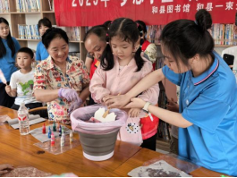 美育课堂是想象力的“孵化器”,手工、折纸、石膏娃娃、漆扇彩绘轮番上演,让孩子们在创作中感受美、表达美。折纸课上,志愿者们教折“千纸鹤”“爱心翅膀”,新城社区的孩子们发挥想象力,给纸鹤画上“翅膀花纹”,说要“让它带着愿望飞”;手工课用卡纸、扭扭棒做“蝴蝶”,功桥社区的孩子们在蝴蝶上写上祝福,说要“送给爷爷奶奶,让他们开心”。