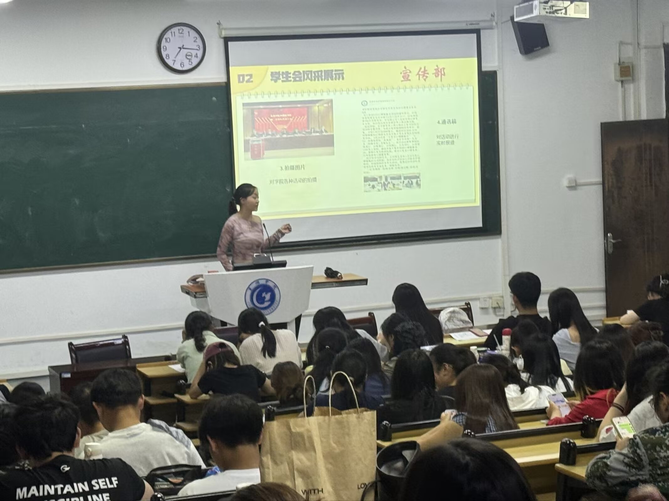 随后,学院各团学组织负责人依次进行了宣讲,他们为本次纳新宣讲做了充足的准备,以视频、图片等多样化形式介绍了各团学组织的组织架构、工作职责等基本信息,展示了学院团学组织历年来取得的工作成果,诚挚邀请广大新生加入团学组织的大家庭。在场的新生同学们积极互动,宣讲会现场气氛活跃。