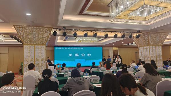 该论坛旨在探索翻译、修辞与国际传播学术前沿,促跨学科融通与理论创新,寻求AI时代国际传播能力建设新路径,邀请国内外专家学者和翻译实践者共议学科发展之路,共绘文明互鉴蓝图。知名学者罗选民、黄必康、胡安江、祝克懿、施旭、夏登山、沈国威、孙艺风、范大祺、张法连、赵彦春、刘志强等作主旨报告。会议特设“期刊主编论坛”,来自国内外学术期刊(含SSCI和CSSCI检索期刊)的7位主编、执行主编齐聚一堂,围绕期刊定位、审稿流程、投稿建议等话题展开深入交流,为与会学者和研究生提供了宝贵的学术发表指导。慕媛媛作为国际期刊International Journal of Translation, Interpretation and Applied Linguistics执行主编受大会邀请发言,并对青年学者如何进行学术论文撰写与发表提出建议。该期刊是我院教师参与建设的国际学术期刊,自2019年创刊以来,进入谷歌学术检索,被中国知网全文收录,已入库《中国人文社会科学期刊AMI综合评价报告》,是学院近年来对外科研交流与合作的重要成果。