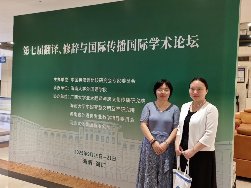 2025年9月19-21日第七届翻译、修辞与国际传播国际学术论坛在海南省海口市召开,论坛主办单位为中国英汉语比较研究会专家委员会,承办单位为海南大学外国语学院。外国语学院教师慕媛媛、董艳受邀参加论坛,慕媛媛作为国际期刊International Journal of Translation, Interpretation and Applied Linguistics执行主编在大会作交流发言。