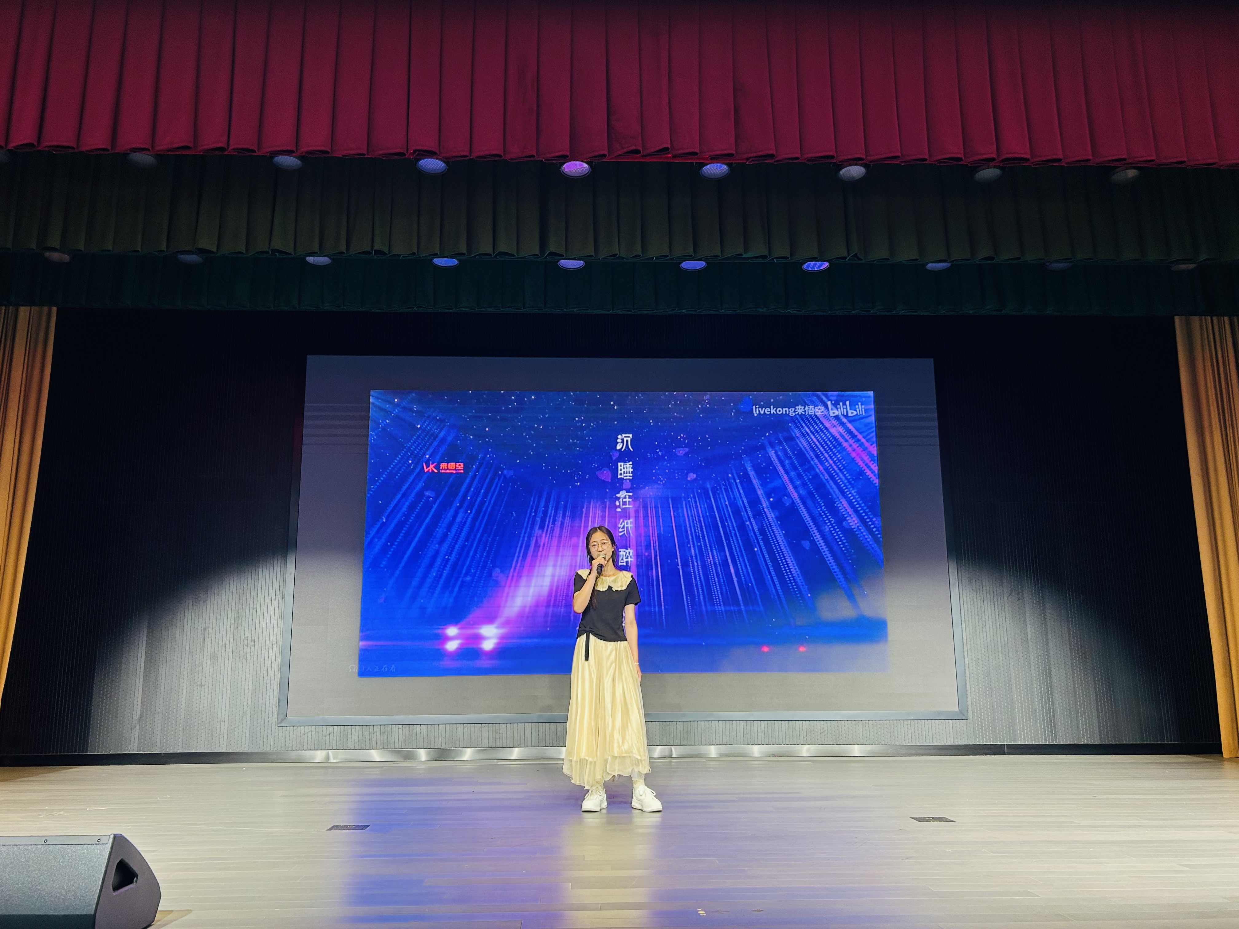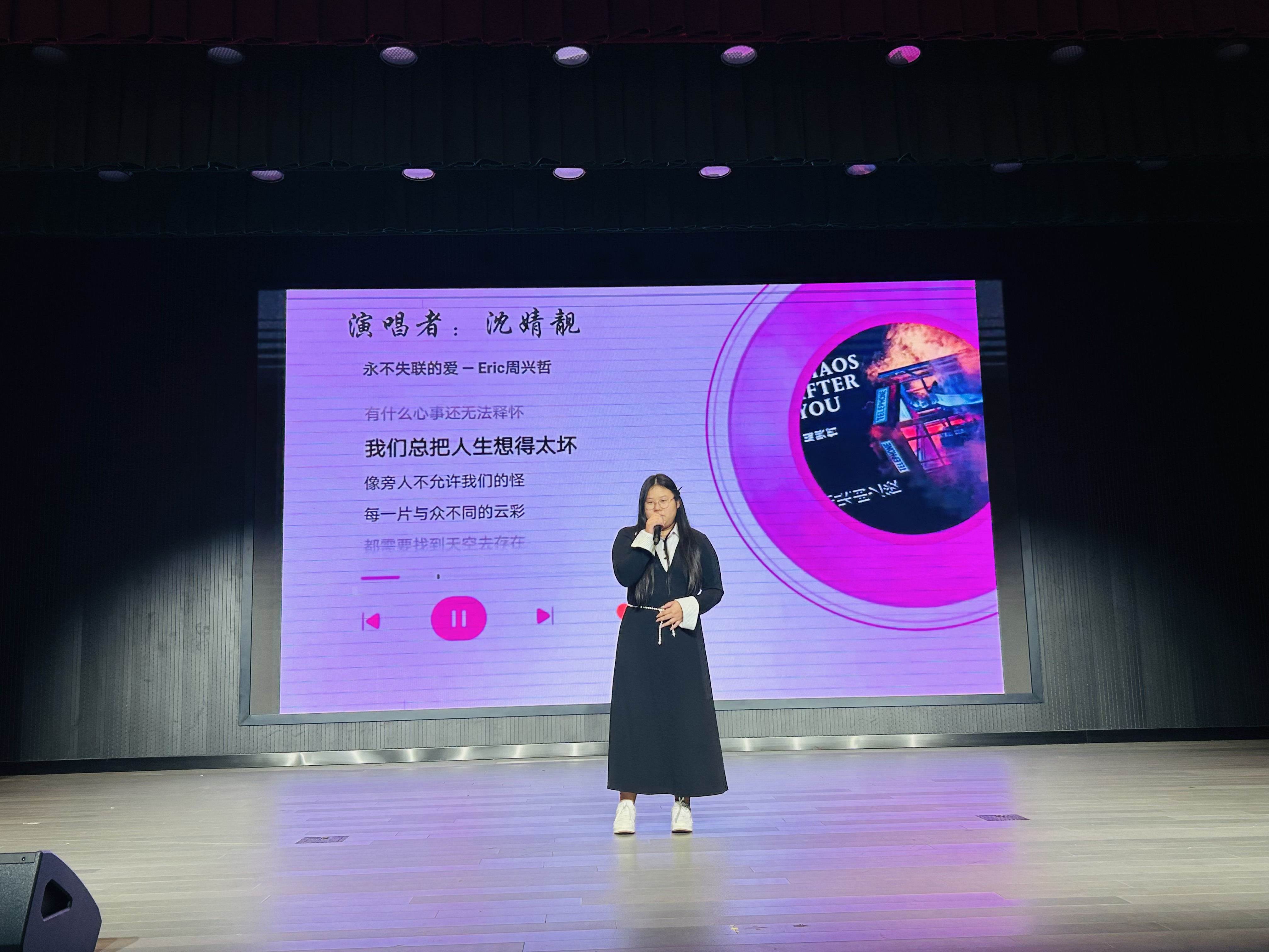 帷幕拉开,同学们青春四溢,尽显青春本色。戴珊珊的《孤独颂歌》拉开了比赛的序幕,她将情感融入歌声里,使全场观众沉浸在动感的节奏中;沈婧靓演唱的《永不失联的爱》,歌声坚定而嘹亮,温柔而有力量;吴思语的《唯一》,让现场观众感受到爱的力量,沉浸在爱的海洋中;卫宇杰的《如果呢》,音符流转,悦耳动听,让人身临其境;张星语的《我只在乎你》,歌声悠扬婉转,沁人心脾,让大家走进沉浸式的浪漫氛围;徐文杰的《拥抱》,用青春之声激荡人心,引得现场高潮迭起,掌声热烈;汪怡凡和钟领的双人合唱,将听众们带到独属于她们魅力的天地,将整场比赛带到一个新的高潮;马荃的《爱我还是他》,以悲伤的曲调将听众带进他构造的有关遗憾和迷茫的爱情世界;嘉宾吴祥明压轴演唱的《落叶归根》,一句悠悠的“远离家乡,不胜唏嘘”唱出离乡求学的学子们对家的思念,不禁让人沉迷。选手们各具特点的唱法不断引领着现场评委和观众走进一个又一个故事。整场比赛高潮迭起,精彩纷呈,在场观众不时爆发出阵阵掌声。