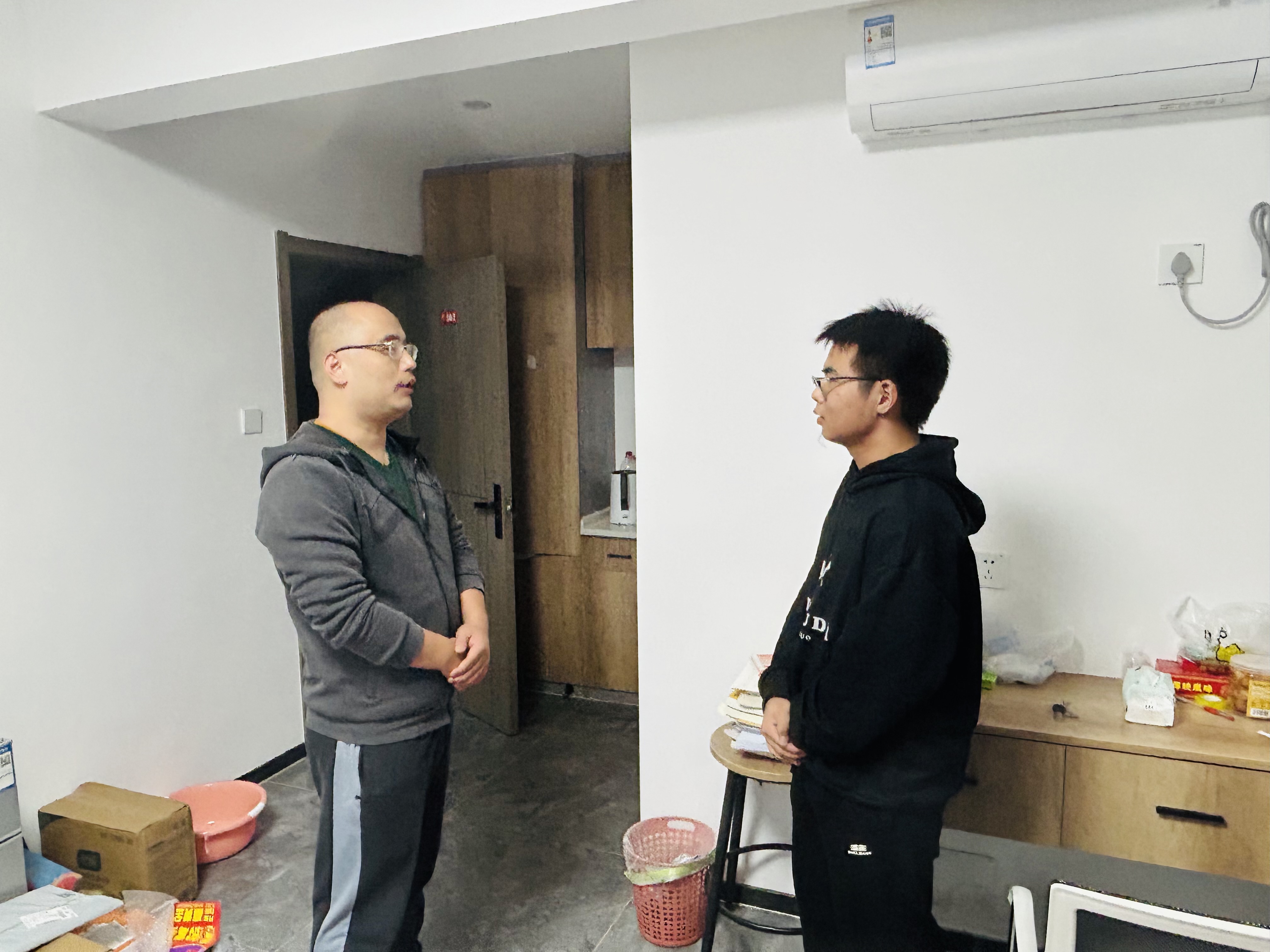 走访过程中,李磊亲切与学生交谈,详细了解学生校外住宿的学习情况和状态,检查他们的居住条件和小区周边环境情况。辅导员着重提醒学生要时刻注意安全防范意识,如遇突发情况要第一时间联系老师,确保人身和财产安全。