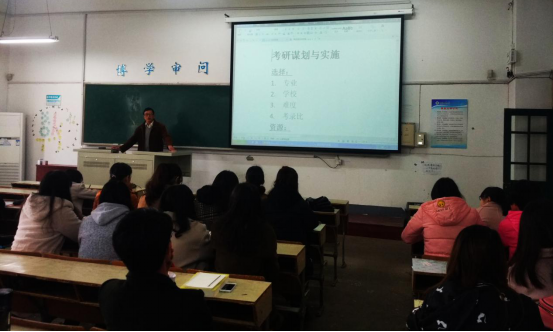 欧阳老师深入浅出的从三个大方面对英语专业考研进行了分析。 一,选择。考生要根据自己的实际情况考虑清楚自己的专业类型,是专业硕士还是学术硕士;是跨考还是考本专业。不盲目跟风,从实际出发,准向定位。欧阳老师特别指出理工类的外语偏向商业型和技术型。 二,资源。考生要利用好纸质书籍,网络素材等资源,将有关考研的信息资源整合利用,让考研更加的科学。欧阳老师说如今的考研不向十多年前的考研信息闭塞,要善于利用。 三,过程。在下定考研的决心后,要明确自己是考研大军中的一员,要记住这一身份,在考研的过程中坚持拼搏,努力的朝目标迈进。欧阳老师以已毕业,且考取名校的师姐为例,告诫大家要注重量的积累。 欧阳老师在讲座结尾时强调,广大学生在学习上有问题可以到其办公室交流,他十分乐意给学生们答疑解惑。 欧阳老师的分析和讲解让同学们对考研更加了解,祝愿2015级英语考研学子们以不懈的努力取得骄人的成绩! (图文:林超)