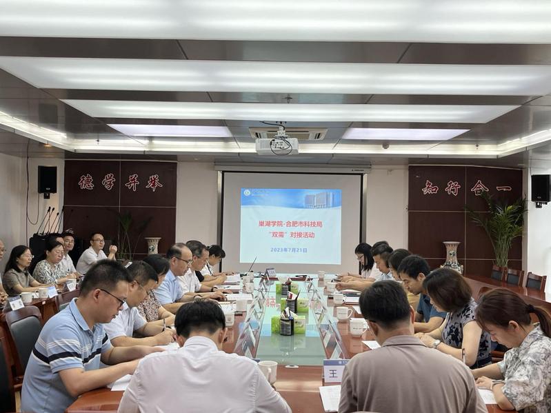 为进一步提升教师的科研水平和高效转化科研成果,7月21日,必赢76net官网-合肥市科技局“双需”对接活动在学校第一会议室举行。合肥市科技局副局长李雪、三级调研员倪修宏、政策法规与创新体系建设处处长张彬,合肥市科创集团副总经理黄叙新、投资部经理潘登,安巢经开区经贸发展局创新发展处主管葛娟,巢湖市科技局副局长钱开莲、平台科科长张培、中科智城王帅一行莅临学校指导。必赢76net官网党委委员、副校长丁俊苗出席会议,学校相关学院、部门负责人,项目汇报教师和合作企业代表参加会议。会议由科研处处长姚磊主持。