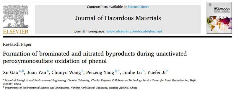 近日,中心研究人员高旭博士在地下水及土壤有机污染修复研究中取得新进展,相关成果以“Formation of brominated and nitrated byproducts during unactivated peroxymonosulfate oxidation of phenol”为题发表在环境领域权威期刊《Journalof Hazardous Materials》(中科院一区Top期刊,IF:13.6)。