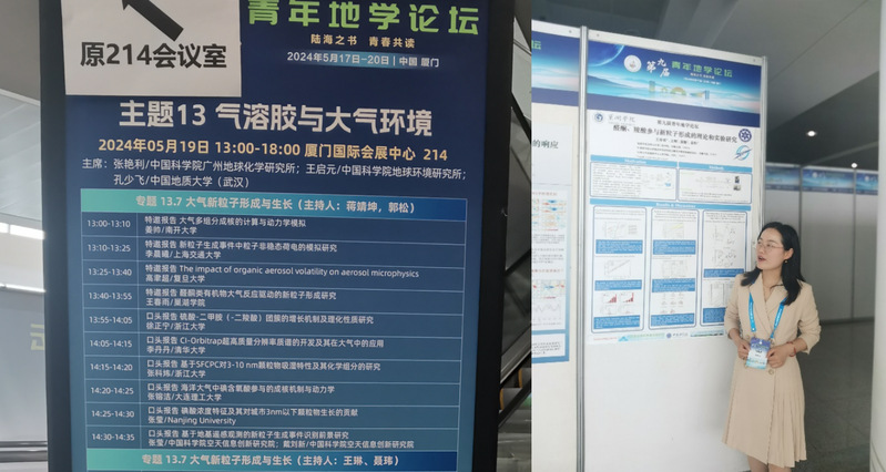 第九届青年地学论坛于2024517-20日在福建省厦门市国际会展中心举行。青年地学论坛是由中国青年地球科学家发起,以杰出科学家为顾问,青年学者及研究生为参与主体而搭建的自由、平等、争鸣的交流平台。本次论坛共设置20个主题280个专题,安徽省环巢湖乡村振兴协同技术服务中心(培育)(以下简称“中心”)王春雨博士参加S13“气溶胶与大气环境”主题并以“醛酮类有机物大气反应驱动的新粒子形成研究”为题作特邀报告。