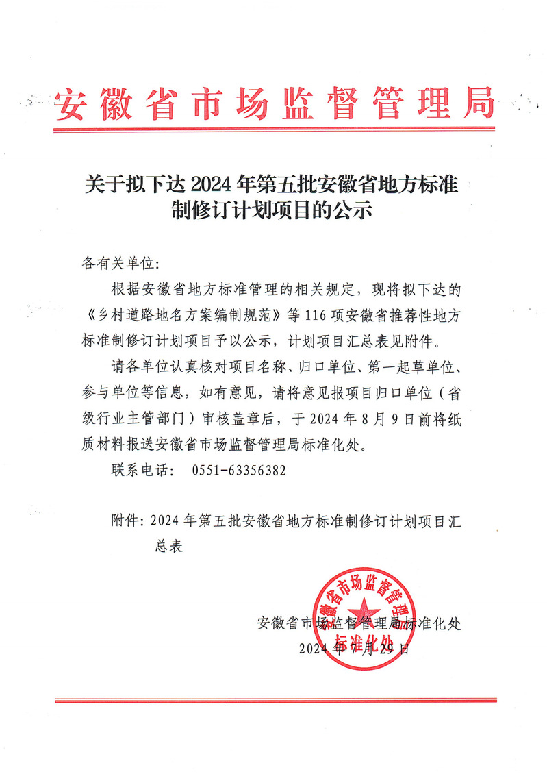 年第五批安徽省地方标准制修订计划项目,中心研究人员陈小举参与的“山区夏秋茶原料质量控制技术规范”获立项推荐。