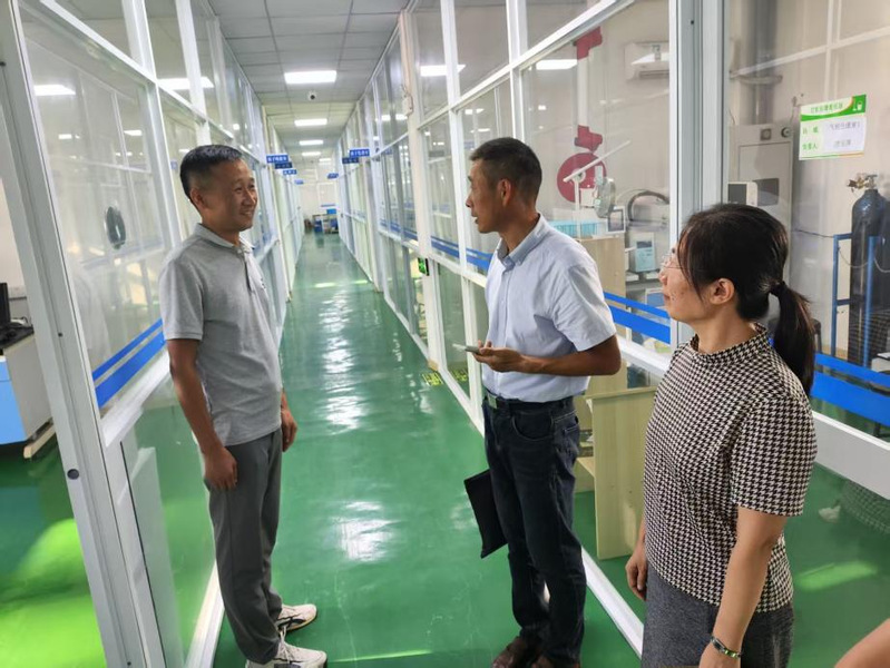 在合肥铭志环境技术有限责任公司,中心人员参观了企业色谱室、光谱室等20余间专业实验室,详细了解了液相色谱仪、气质联用仪等检测设备的运行情况。针对企业提出的复杂样品检测效率低等难点,中心人员结合环境领域研究成果,提出相关方案优化建议。双方计划开展水质检测、大气检测等技术攻关,并依托企业检测实践基地培养学生实操能力。