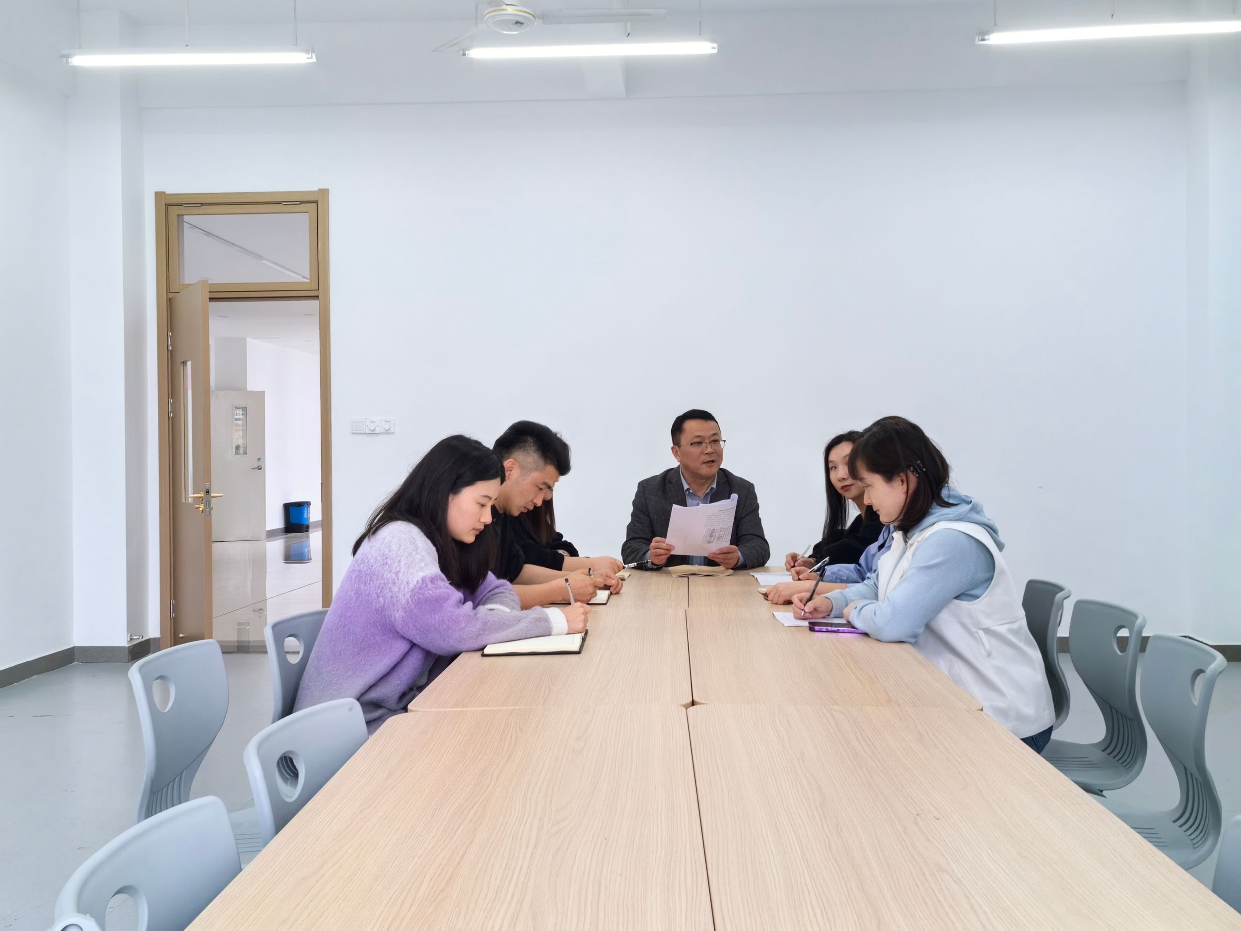 课后,张更立组织参与观摩的教师对本节课开展了教研。孔德小雅认为本次课程重点突出、教学内容完整、教师感染力强。刘雅莉从课程进度安排、教师示范方式等方面提出了建议。刘雨悦从音乐曲式特点和节奏特征等方面分享了对于教学内容选择与利用的心得。张更立指出,课堂教学是人才培养的关键环节,各位教师应主动学习,不断提高教学能力、提升课堂教学质量。(供稿:学前教育教研室)