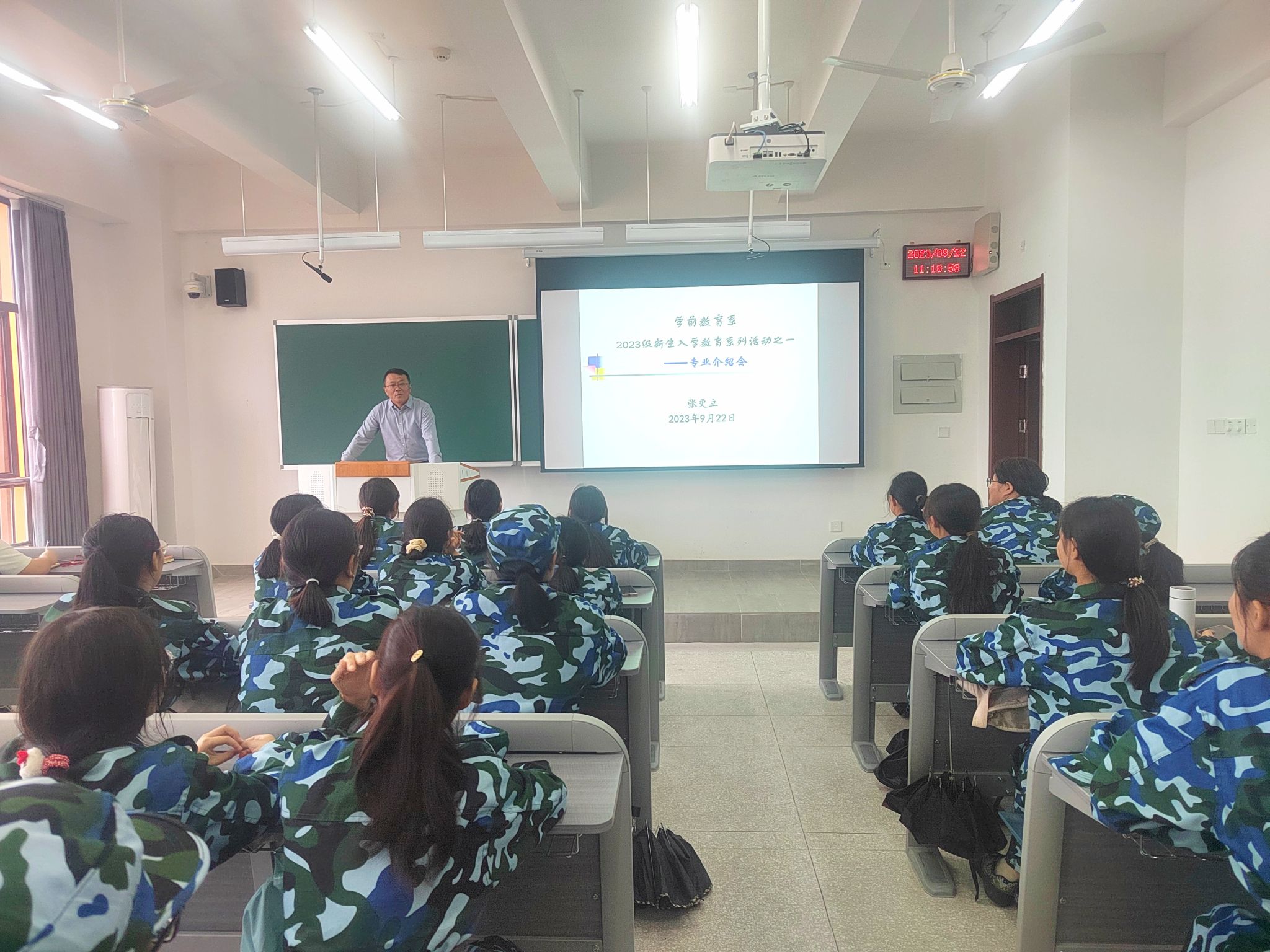 为帮助新生明确发展方向、了解专业培养定位,2023年9月22日中午,学前教育系在第二教学楼B309教室面向2023级学前教育专业新生召开专业介绍会。本次专业介绍会由系主任张更立主讲,新生辅导员李璐主持,副主任刘雅莉、教学秘书刘群及全体新生到场参与。