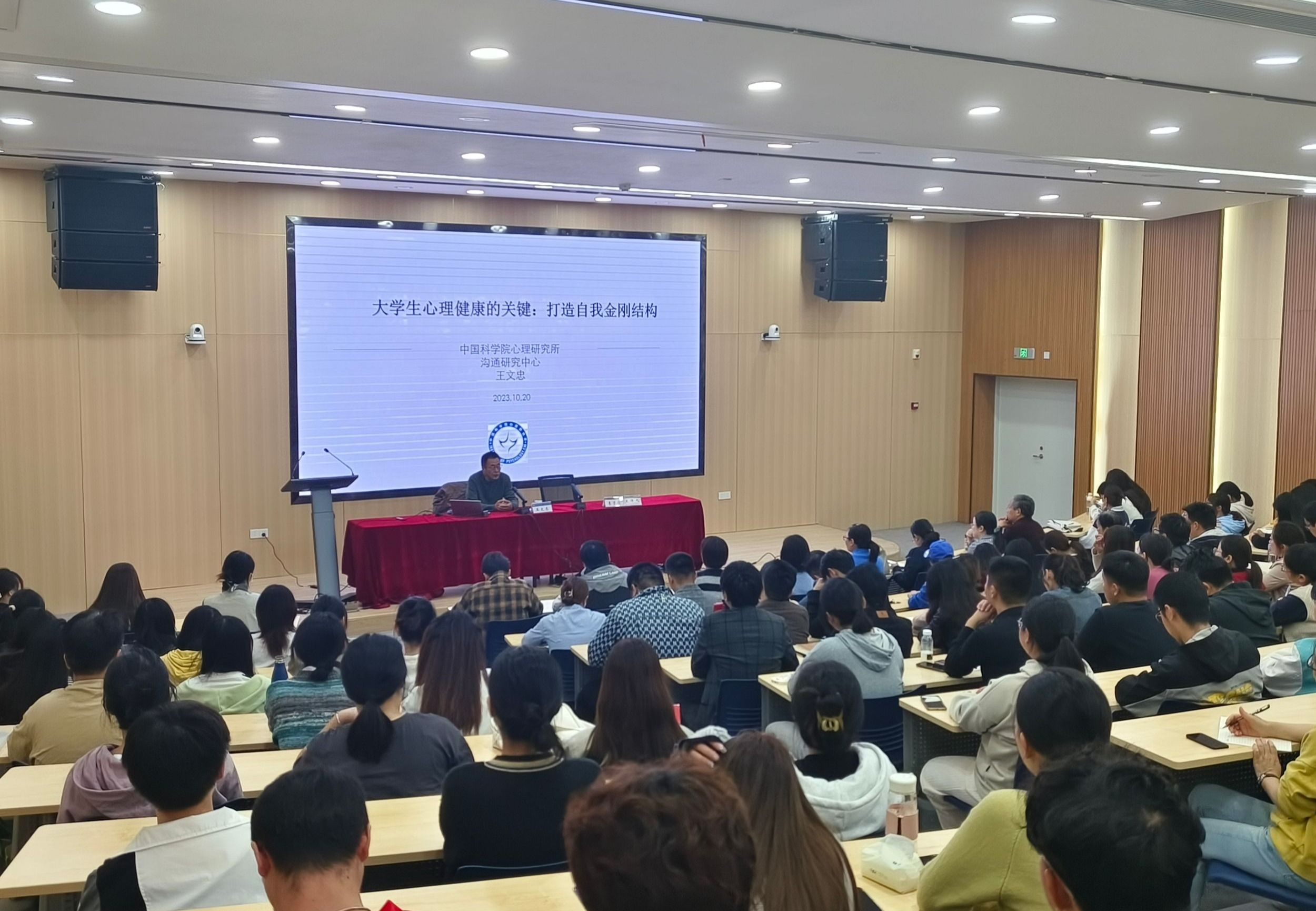 10月20日上午,学院在江北校区7号楼报告厅举办皖江大讲坛第五讲暨第六期辅导员专题培训会。中国科学院心理研究所沟通研究中心主任、博士、研究员王文忠受邀为皖江师生作“大学生心理健康的关键:打造自我金刚结构”主题讲座。学生工作部、院团委全体成员,全体专兼职辅导员及各系学生代表参加讲座。讲座由院长李子华主持。