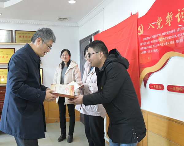 阮爱民为两位过“政治生日”的党员王林和崔青星发放贺卡并表示祝贺。他提出三点要求:一要树立党员意识,时刻牢记自身党员身份;二要明确党员责任,牢记党的宗旨和使命;三要发挥党员作用,把“不忘初心、牢记使命”落到实际工作中。